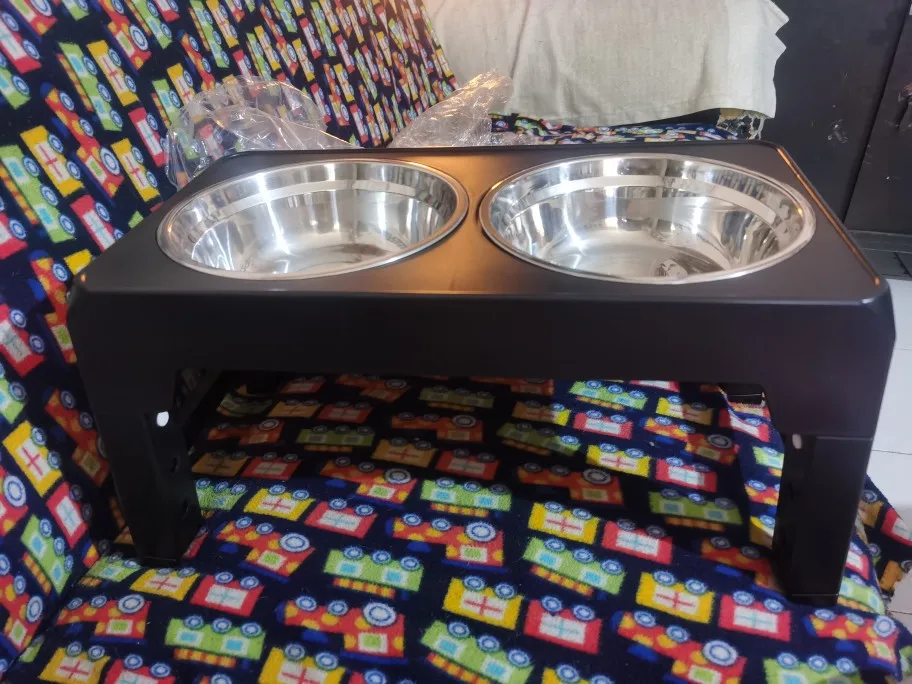 Gaston Reichert Fast shipping. Bowl holder with lift, I got the large size, and I would say it's accurate for my large-sized dog like a Shih Tzu.