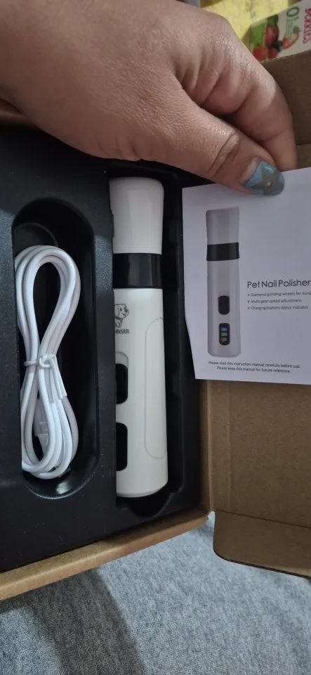 The USB Rechargeable Pet Nail Grinder features a powerful, low-noise motor with adjustable speed settings. It runs on a USB rechargeable battery that takes 2–3 hours to charge and provides up to two hours of use. The grinder is made of durable ABS plastic and includes a high-quality grinding bit. Its compact, lightweight design makes it easy to handle, and the built-in LED light ensures precision while grooming. Suitable for dogs and cats of all breeds and sizes, this grinder keeps nails healthy, smooth, and pain-free.